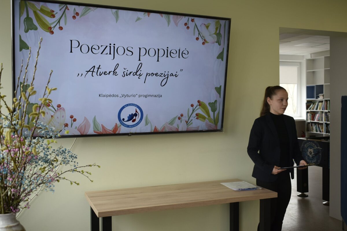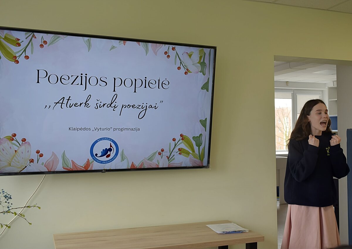 Jau penktus metus Klaipėdos Vyturio progimnazijoje balandžio 16 d. vyko tradicija tapusi poezijos popietė „Atverk širdį poezijai“, subūrusi gausų būrį poezijos mylėtojų. Renginyje žodžio meną puoselėjo „Varpo“ gimnazistės Emilija Slušnytė (2e), Kamilė Butvytytė (1d) bei mokines lydėjusi lietuvių kalbos ir literatūros mokytoja Kristina Norvilė.